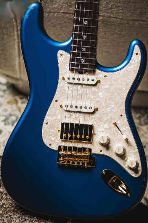 2 single coil & bridge humbucking pickups, 9 screw holes, 3 knobs & switch